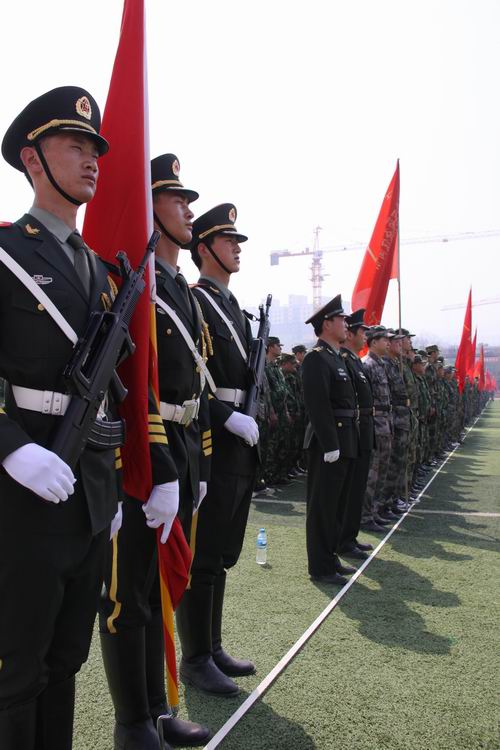 上午10時(shí),點(diǎn)驗(yàn)大會(huì)在嘹亮的軍歌聲中拉開序幕。預(yù)備役官兵軍容嚴(yán)整,雄姿勃發(fā),精神抖擻,士氣高昂,充分展示了當(dāng)代預(yù)備役軍人的良好精神風(fēng)貌,展現(xiàn)了部隊(duì)良好的軍政素質(zhì)和優(yōu)良的戰(zhàn)斗作風(fēng)。3名儀仗隊(duì)員護(hù)衛(wèi)著軍旗,邁著矯健的步伐從主席臺(tái)南側(cè)走到隊(duì)列北側(cè)。1500余人的預(yù)備役軍人身著整齊的軍裝,按照各自編制,在操場排成整齊的方隊(duì),接受了首長的檢驗(yàn)并進(jìn)行了宣誓儀式。點(diǎn)驗(yàn)結(jié)束后,預(yù)備役官兵進(jìn)行了擒敵拳、盾牌警棍術(shù)和防爆隊(duì)形等三個(gè)科目的匯報(bào)演示。通過集結(jié)點(diǎn)驗(yàn),鍛煉提高了團(tuán)首長機(jī)關(guān)和營連各級(jí)指揮員的組織協(xié)調(diào)能力,探索研究了組織全團(tuán)集結(jié)點(diǎn)驗(yàn)的方法路子,錘煉了部隊(duì),強(qiáng)化了作風(fēng),有效提高了部隊(duì)快速動(dòng)員和隨時(shí)應(yīng)召的能力。