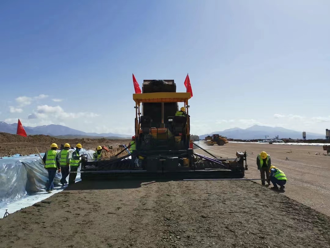5月28日,伴隨著第一車水泥穩(wěn)定砂礫混合料緩緩倒入攤鋪機(jī)料斗,標(biāo)志著由我司承建的新疆和靜(巴音布魯克)機(jī)場(chǎng)飛行區(qū)跑道水穩(wěn)基層試驗(yàn)段施工正式拉開序幕。
