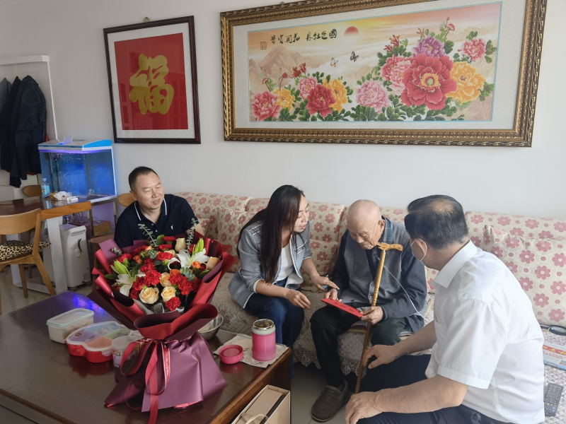 “馬上過節(jié)了,一個是國慶節(jié)、一個是重陽節(jié),我們專門過來看望您,祝您節(jié)日快樂”,省委老干部局領(lǐng)導(dǎo)向老人轉(zhuǎn)達(dá)了省委省政府的關(guān)心問候,和他親切交談,祝福老人健康長壽。