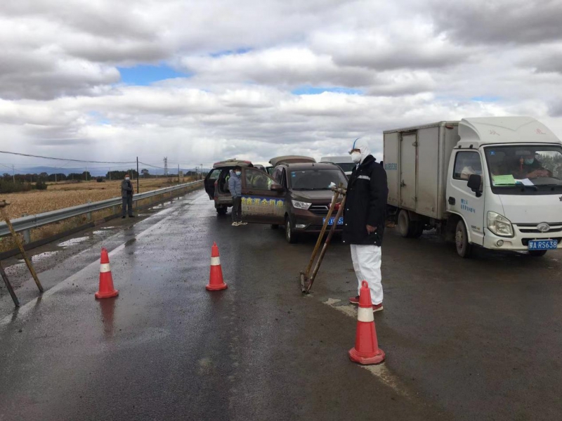 項(xiàng)目部黨支部書記杜騫,第一時(shí)間安排人員對(duì)北門卡口進(jìn)行布置,安排采購(gòu)疫情物資(醫(yī)用口罩、防護(hù)服、測(cè)溫槍、消毒液等),與10月1日10點(diǎn)左右在新機(jī)場(chǎng)北門疫情防控卡點(diǎn)布設(shè)完畢,配備了12名項(xiàng)目部管理人員(8小時(shí)三班倒)在卡口進(jìn)行疫情防控。新機(jī)場(chǎng)北門疫情防控卡點(diǎn)人員對(duì)過(guò)往車輛、人員進(jìn)行登記,掃碼、查看行程卡、核酸報(bào)告、登記來(lái)源地、去往地點(diǎn)。對(duì)無(wú)48小時(shí)核酸報(bào)告的人員進(jìn)行勸返。