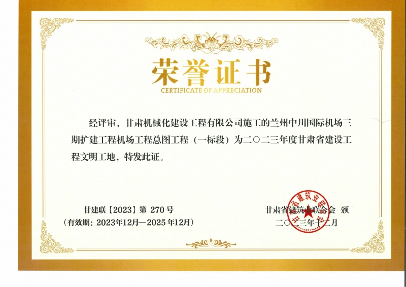 2023年度甘肅省建設(shè)工程文明工地 蘭州中川國際機(jī)場(chǎng)二期擴(kuò)建工程機(jī)場(chǎng)工程總圖工程 (一標(biāo)段)